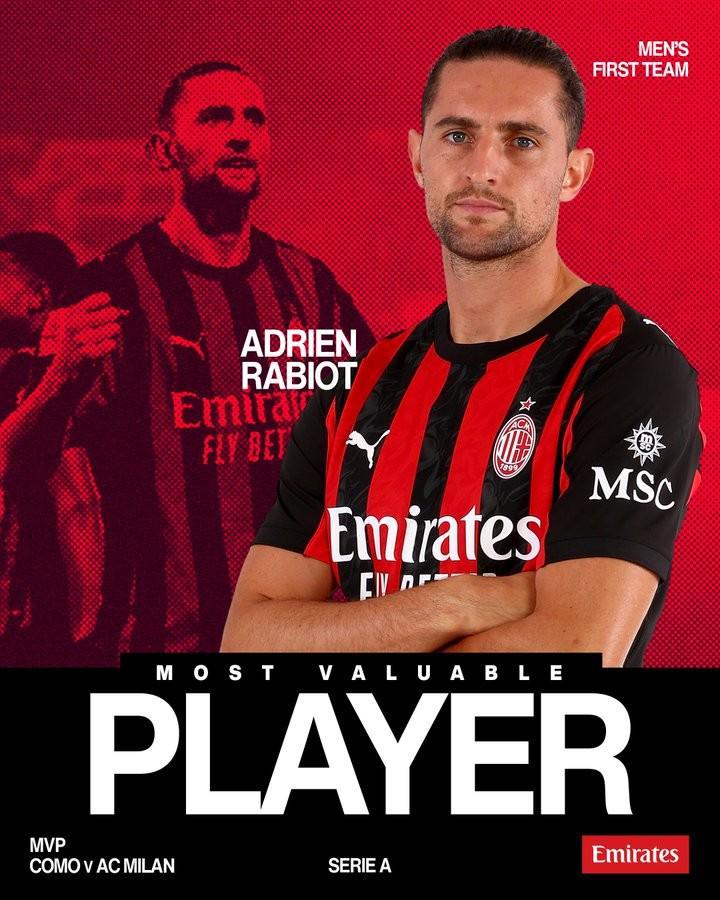 在今天凌晨进行的意甲第16轮比赛中,米兰客场3-1击败科莫,其中拉比奥完成双响,赛后,他被米兰官方评为本场比赛队内最佳球员。