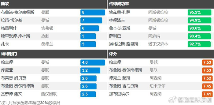 在英超助攻榜上,B费以8助领跑,曼城中场切尔基以7助紧随其后,曼城弃将格拉利什以6助排名第三。曼联需要B费保持健康,近期B费伤缺,曼联对阵三支保级球队遭遇三连平,本赛季单线作战英超争五获得欧冠名额是俱乐部底线。