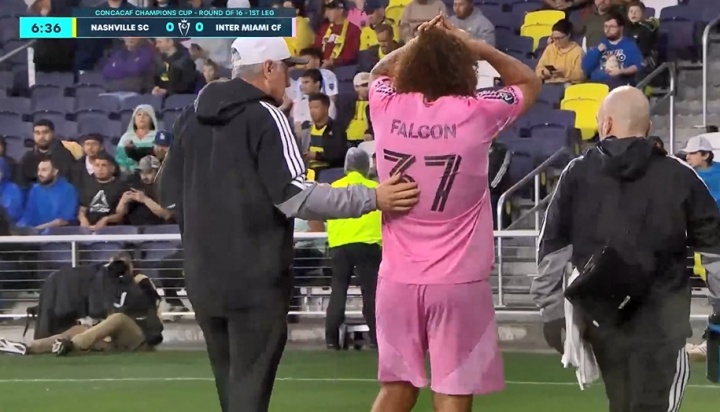 迈阿密后卫法尔肯开场第7分钟伤退,与对手争球被压倒 xiaoqiao 2026年03月13日 21:17 12 0 03月12日讯 美冠杯1/8决赛首回合,迈阿密国际客战纳什维尔。开场7分钟,法尔肯伤退,卢扬替补登场。