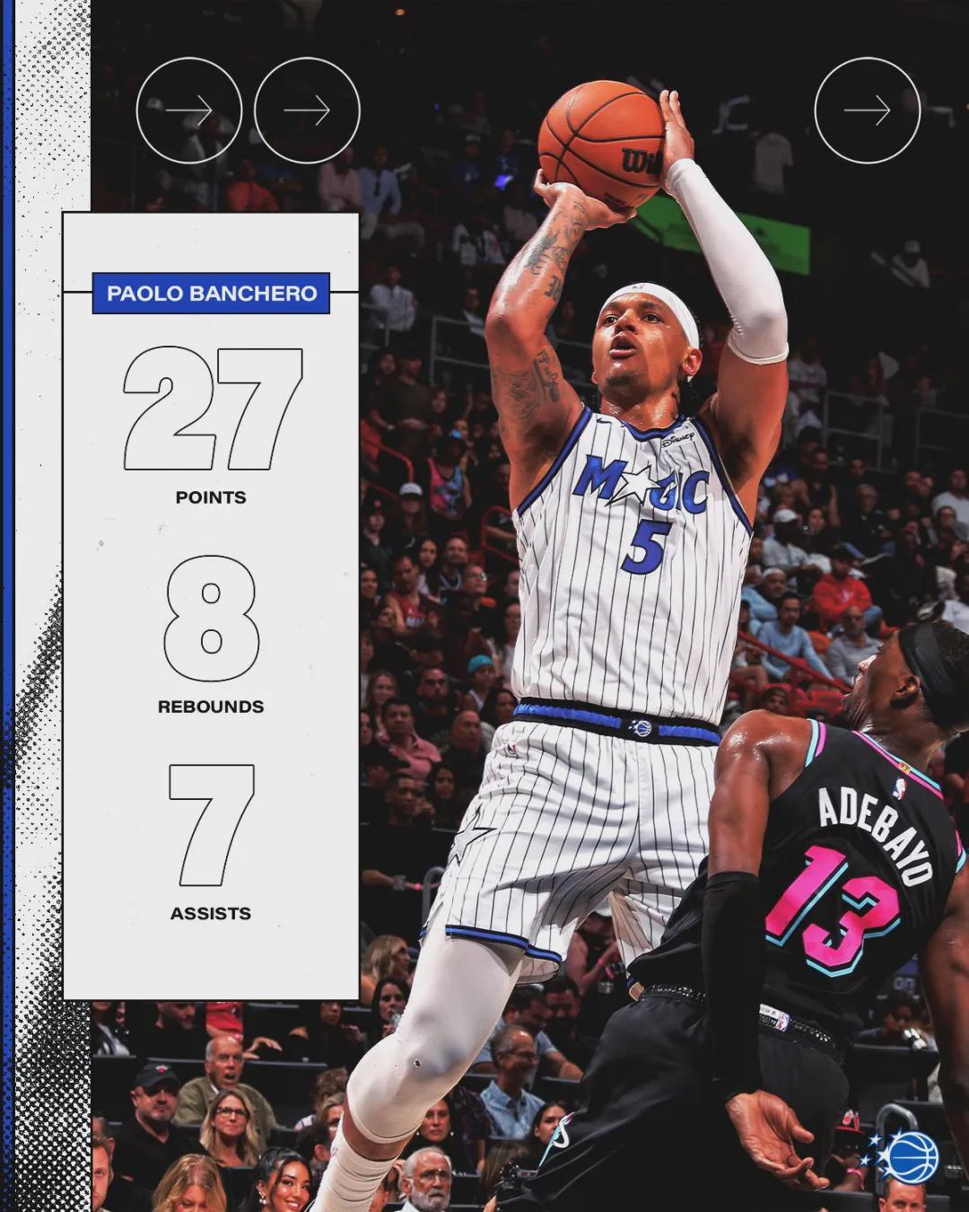 魔术主帅莫斯利赛后接受采访时说道:“阿德巴约任何一晚都可能爆发!就算不是83分,你也不想让他拿50分、40分或者30分。所以,我们每次都必须用特定的方式去防守他。”阿德巴约赛后对裁判不满:“他们的吹罚改变了比赛走势。”